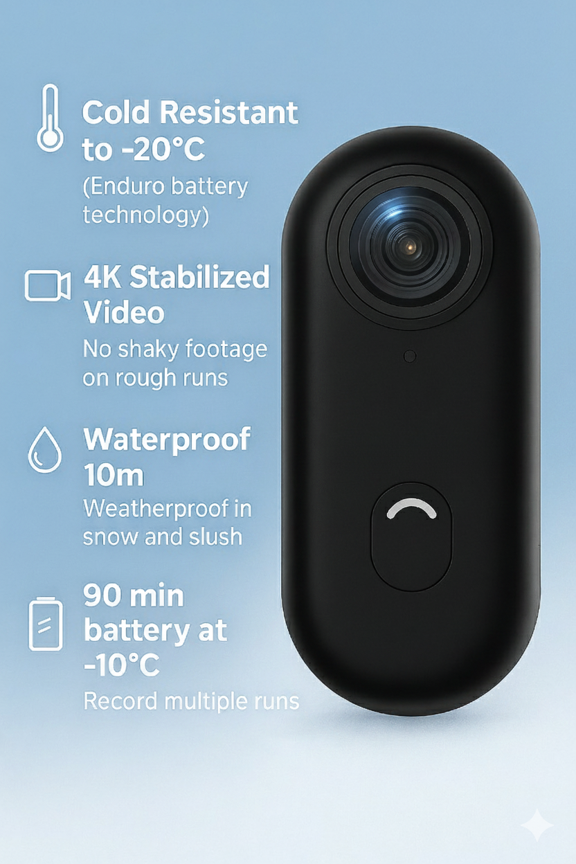 Yes, the KILIT™ 4K Action Camera is fully weather-resistant and performs great in snow, wind, and cold conditions. Like all cameras, extreme cold can slightly reduce battery performance, so we recommend keeping it warm before recording. Use the waterproof housing for heavy snow or rain sessions to maintain clear footage.